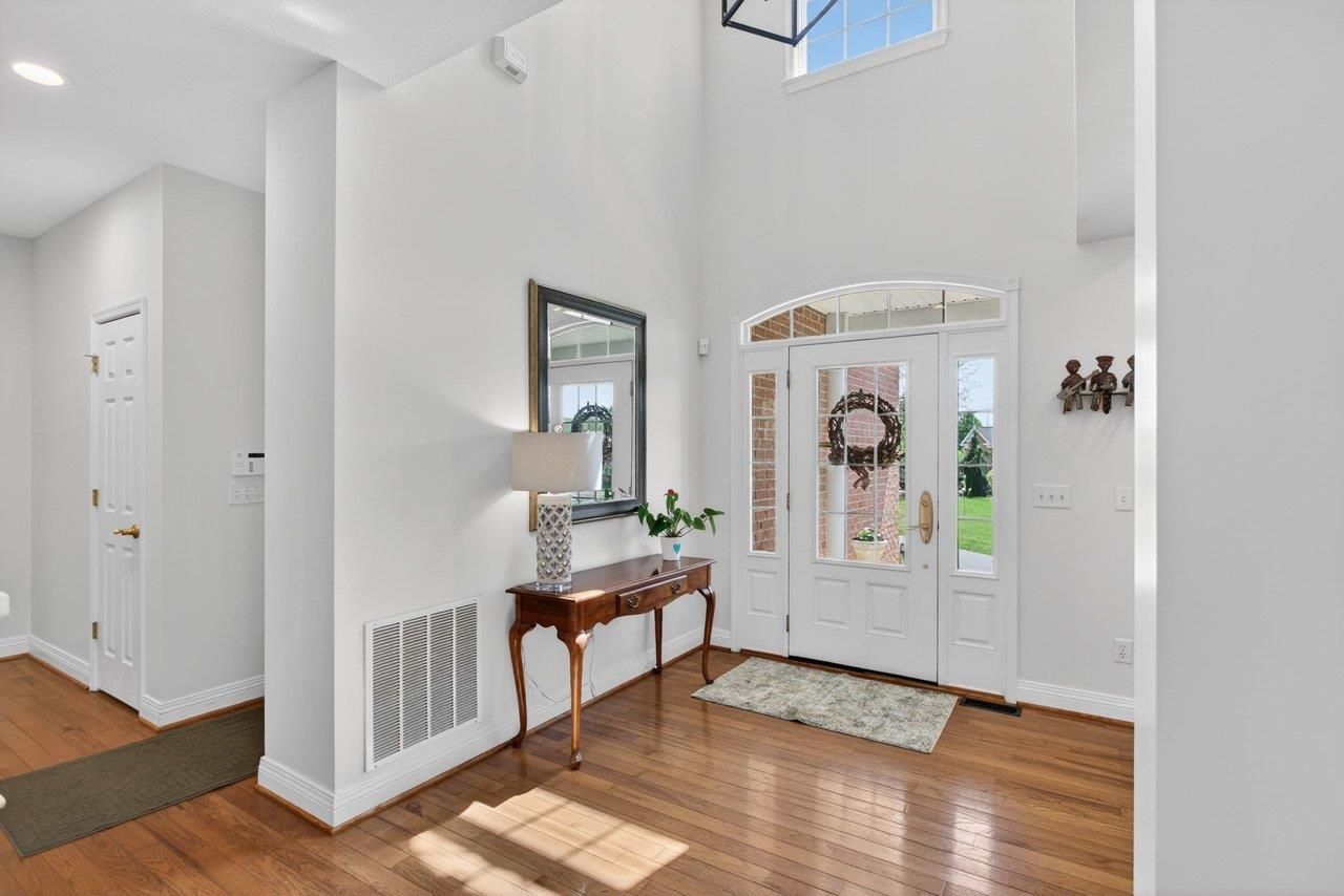 Perched at the highest point of the subdivision, this gorgeous colonial home looks over the popular neighborhood of Highland Park. Enjoy peaceful views from the front porch and a private rear deck for backyard barbecues. Step inside to an oversized great room and dining area beaming with abundant light and high ceilings. An enormous, open kitchen with endless counter space allows numerous cooks ample room to prepare food and entertain guests. The main living area was recently repainted in 2025, and hardwood flooring flows throughout. One bedroom and a full bath reside on the first level. The second floor boasts the primary bedroom with a lovely ensuite bath. Two additional bedrooms, a full bath, and a laundry area are conveniently located on the upper level. The expansive finished basement offers a wet bar, dining area, and an open rec room ideal for hanging out and watching movies. The current owners enjoy using some of this area for their home gym. An optional fifth bedroom (or office) with a large walk-in closet and a stylish bathroom completes the lower level. The upstairs heat pump was replaced in 2023. New carpet was just installed in the bedrooms. The home is competitively priced for the neighborhood and shows well!