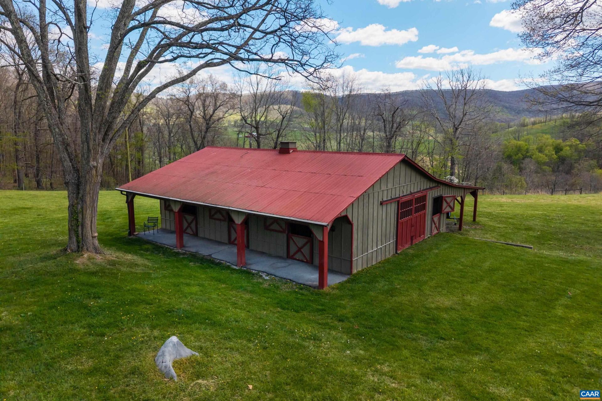 Designed by Virginia architect Thomas W. S. Craven and set on 65.73± private acres in the mountains of Hot Springs, this five-bedroom farmhouse estate is offered for the first time in a generation. Just 10 miles from the Omni Homestead Resort, the setting is as private as it is well-positioned. The main house (5 BR / 3.5 BA) reflects Cravens attention to finish and proportion: Venetian plaster walls, crown moldings, soaring 20-foot ceilings in the upstairs primary suite, and two fireplaces anchoring the entertaining rooms. A renovated kitchen opens to a morning room with mountain views. A screened porch, slate breezeway, and formal rear gardens complete a home that lives well in every season. The first-floor primary suite offers screened-porch access and a full bath. Upstairs, a second primary retreat features 20-foot ceilings, a dressing area, two walk-ins, and a private bath. Three additional bedrooms and a corner study round out the upper floor. Above the attached garage, a self-contained apartment with one bedroom, kitchenette, and full bath offers flexible accommodations for guests or staff. A four-stall barn, fenced pastures, and wooded trails complete the offering.