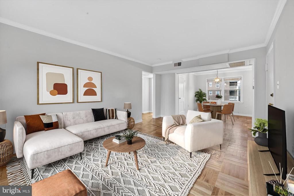 Top Floor so no one above you! Beautiful refin parquet floors throughout & newly painted. Filled with natural light and overlooking the courtyard, you will love living here! Kitchen has lots of cabinet space, countertop space & Pantry Storage. Crown Moldings. A newer HVAC. An added bonus, the laundry room, huge storage unit and bike racks are conveniently located in the same building. The condo dues include gas (for cooking and hot water), water, trash, and plentiful unassigned parking. Belle View Condos offer abundant amenities including a pool complex with a separate lap pool, three tennis courts, basketball court, & tot lots. Save some gas money - this walkable neighborhood has it all with shopping, dining, parks (for dogs and humans), a farm stand and the new Rec Center just blocks away. Stroll over to Bread & Water Bake Shop, a bike shop, wine shop or the attached shopping center with an updated Safeway with Starbucks. Great outdoor activities include using the Mt Vernon Bike Trail along the Potomac or renting a sailboat or paddle board at Belle Haven Marina. Commuters will appreciate the close proximity to Huntington Metro (with a parking garage), just a short bus or bike ride away, and easy access to I-95, National Harbor, Fort Belvoir, Pentagon and, of course, Old Town with all it's restaurants, shopping and charm!