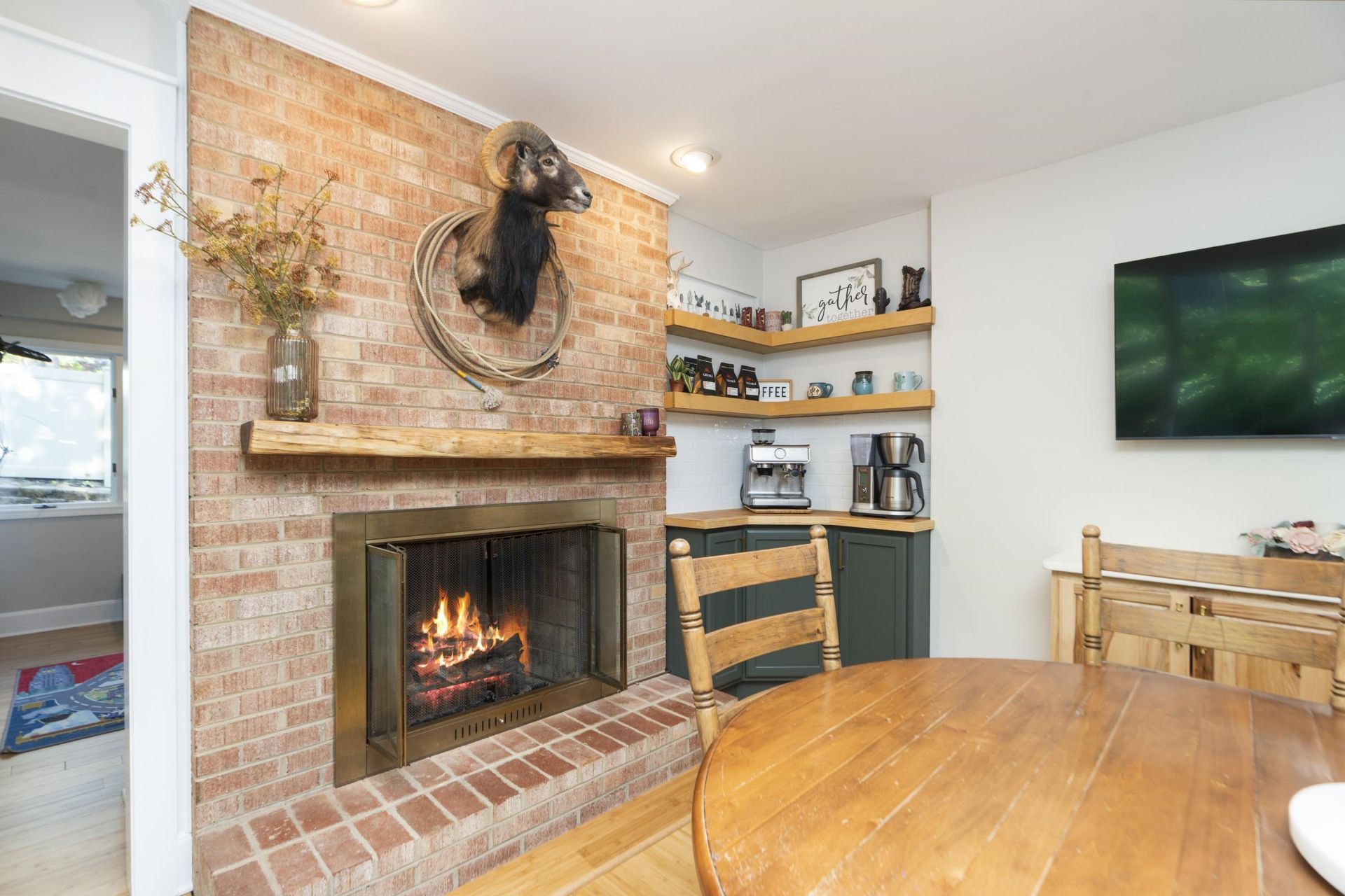 Tucked away at the end of a peaceful cul-de-sac, 807 N Braeburn Pl in Staunton beautifully embodies the American Dream. This mid-century modern home has undergone a complete transformation, showcasing the sellers' impeccable design sense. The exterior boasts a fresh coat of paint, a custom Andersen steel front door, and a charming brick and stone firepit perfect for cozy gatherings. Inside, the home is a marvel of modern upgrades, featuring LED recessed lighting, bamboo hardwood floors, and custom wood shutters. The kitchen is a culinary delight with premium cabinetry, leathered stone countertops, and state-of-the-art appliances. All three bathrooms have been fully remodeled, offering luxury with new tile, fixtures, and smart exhaust fans. Smart home features include Google Nest thermostats and a Ring doorbell system, ensuring convenience and security. Every corner of this home speaks to a blend of style and functionality, making it an ideal retreat for those who appreciate refined living.
